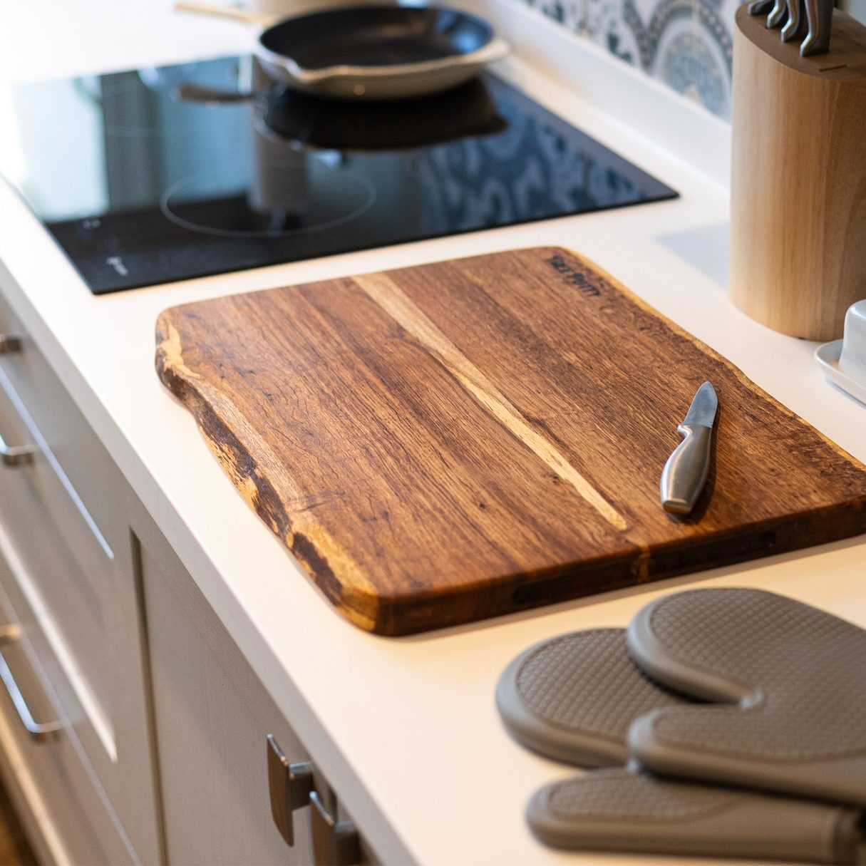 Each board leaves our workshop finished with food-safe Tung oil and natural beeswax, giving it a durable, nourishing protection that ages beautifully with use.